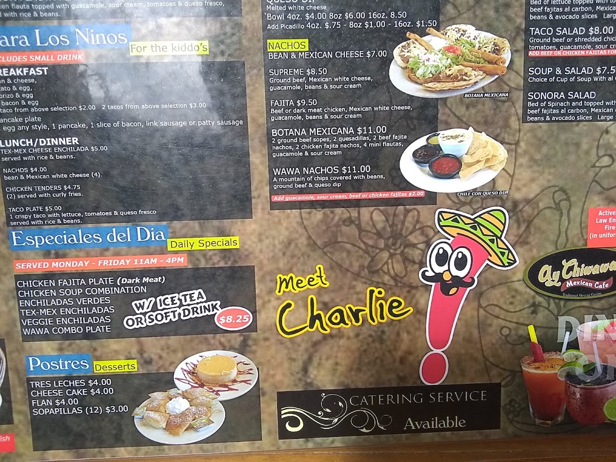 Ay Chiwawa! Mexican Cafe offers a menu that feels like a welcoming blend of traditional Mexican comfort and casual dining ease. The selection is approachable and designed to suit a variety of times—whether you’re stopping by for a relaxed breakfast or settling in for a satisfying lunch or dinner. You’ll find familiar favorites like Huevos Rancheros and Chicken Tortilla Soup alongside hearty options such as the Senior Enchilada Plate or the Vaquero Special.